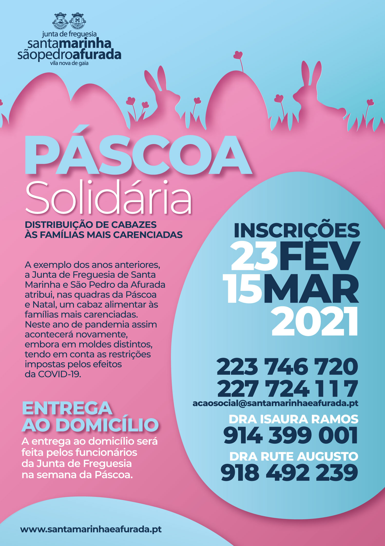 A exemplo dos anos anteriores, a Junta de Freguesia de Santa Marinha e São Pedro da Afurada atribui, nas quadras da Páscoa e Natal, um cabaz alimentar às